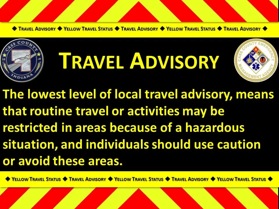 Cass County has returned to yellow travel advisory status as of 12:47 p.m. Monday, January 26, 2026.