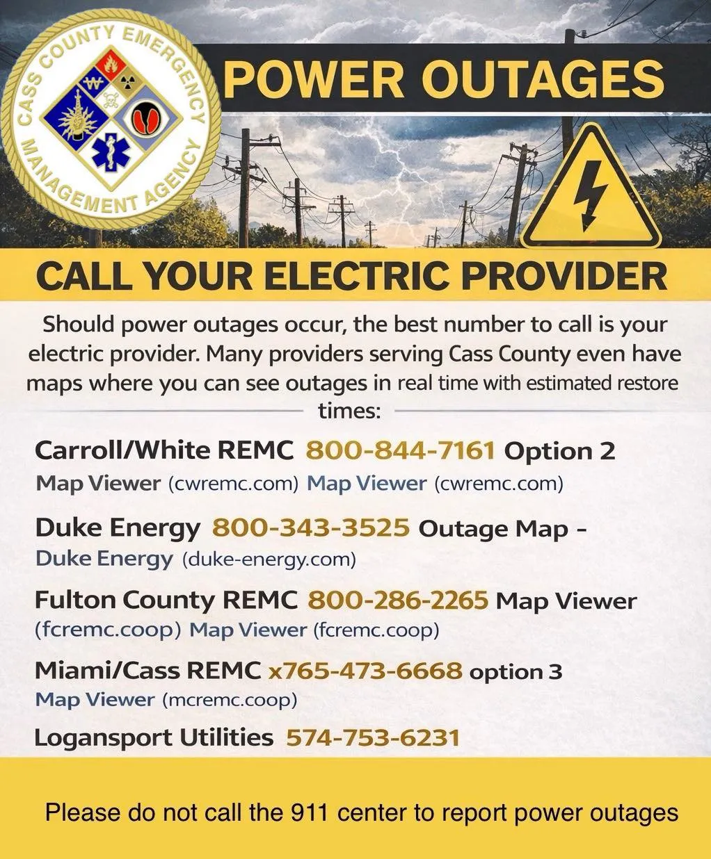 .Cass County Emergency Management Agency shared this list of phone numbers for electric providers who serve Cass County on their Facebook page. Many providers even have maps where you can see outages in real time, with estimated restore times: