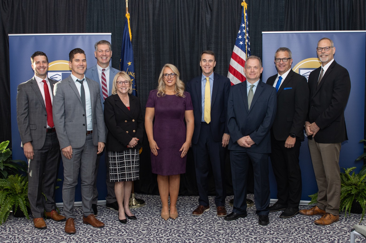 ABOVE: Leaders from Anderson University, Bethel University, Grace College, Huntington University, Indiana Wesleyan University, joined Taylor University, Indiana Secretary of Education Dr. Katie Jenner, and President and CEO of the Independent Colleges of Indiana Dottie King at Tuesday’s press conference.