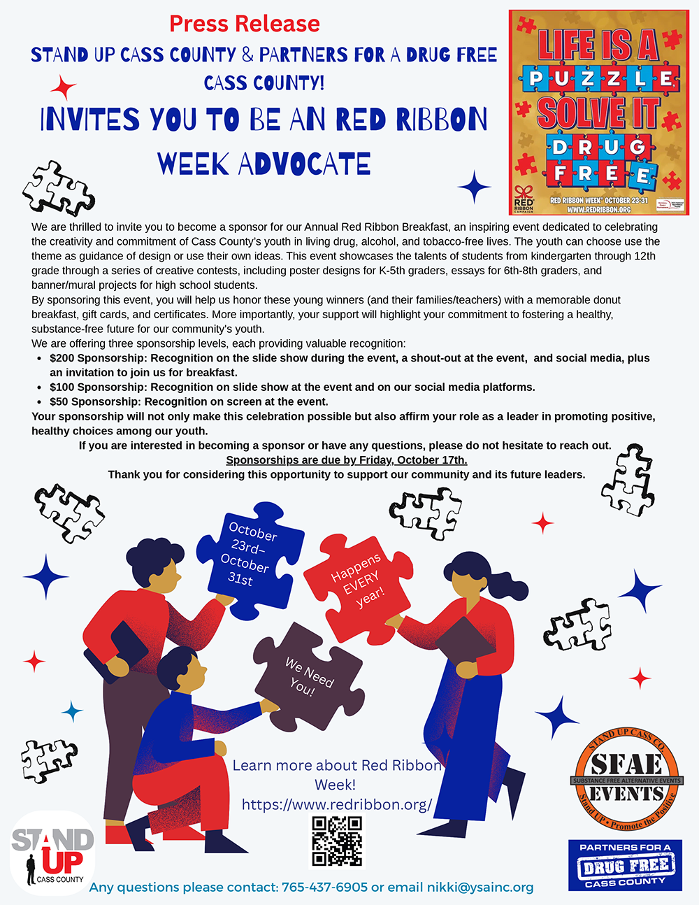 Stand Up Cass County and Partners for a Drug Free County invite you to be a Red Ribbon Week advocate