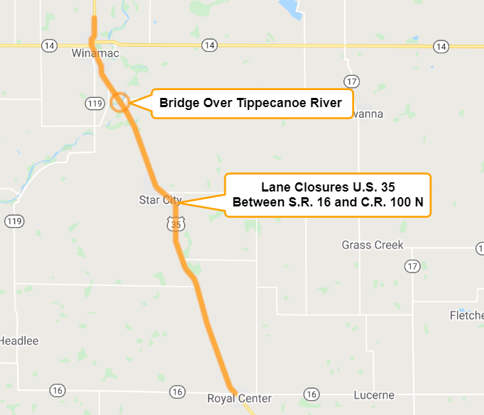SOURCE: News release from Indiana Department of Transportation CASS AND PULASKI COUNTIES, Ind. – The Indiana Department of Transportation announces lane closures on U.S. 35 from C.R. 100 N to State Road 16 beginning on or after Monday, April 13.…