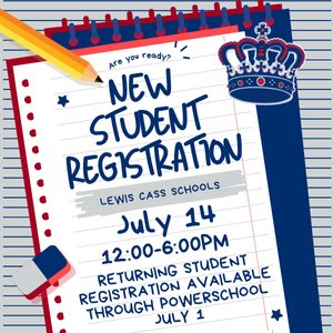 New student registration for Lewis Cass Schools will be July 14, 2025 from 12-6 p.m.