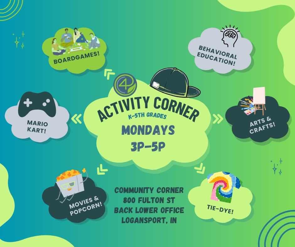 Welcome to any youth in grades K thru 5 at 4C Health Community Corner on Mondays from 3-5 p.m.. Free for any youth to come into an adult monitored, free safe space for the youth to engage in positive peer interaction with others.