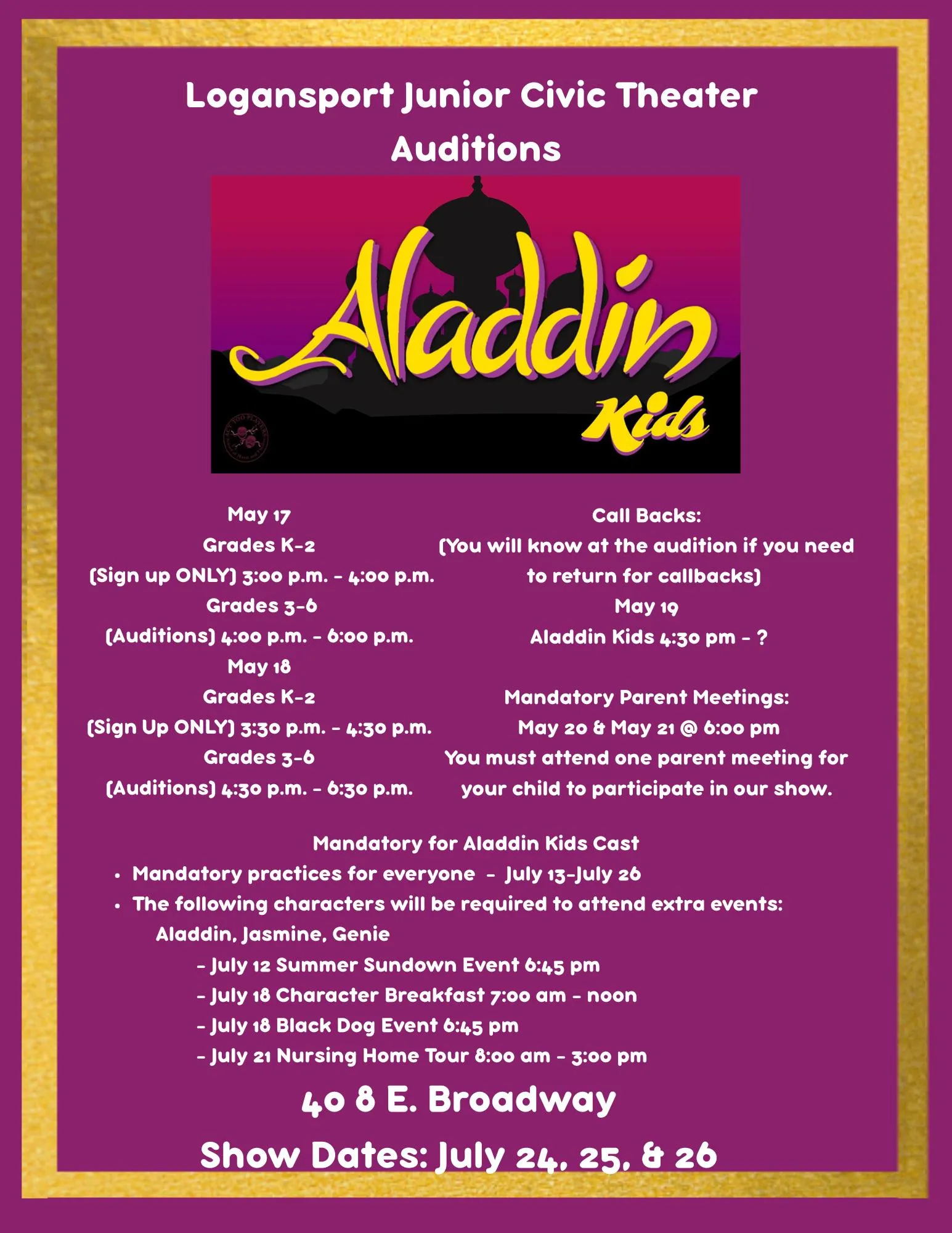Mandatory for Aladdin Kids Cast