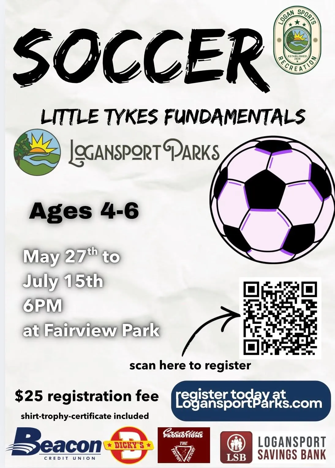 Get signed up for the Logansport Parks soccer program at Fairview Park.