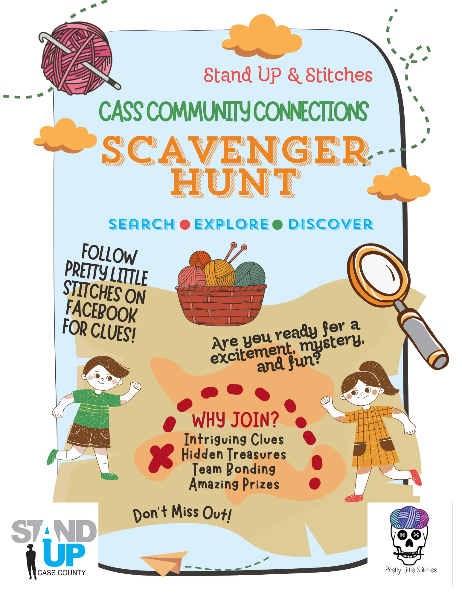 Stand Up Cass County and Pretty Little Stitches are doing a Community Scavenger Hunt. Follow Pretty Little Stitches on Facebook for clues.