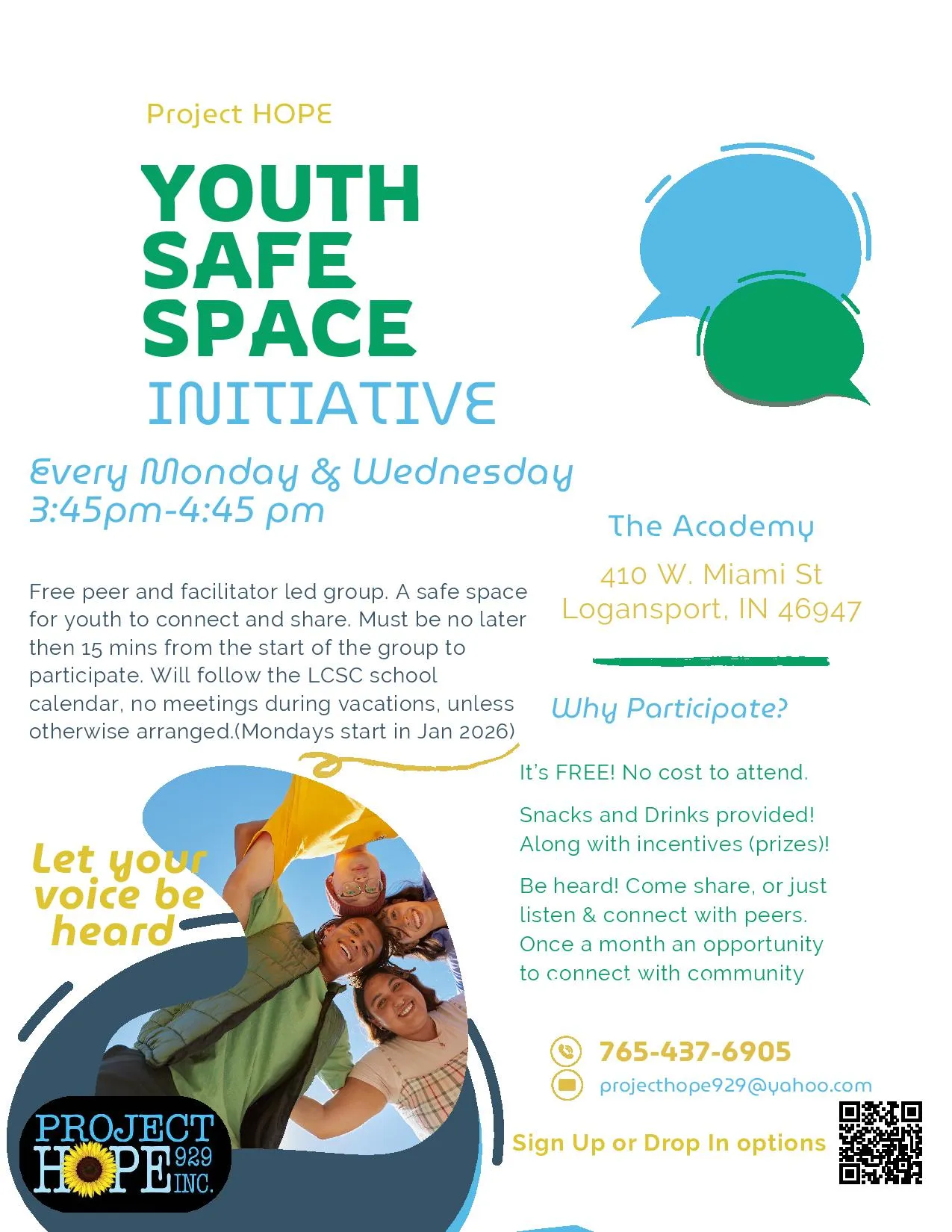 This is your chance to stand up & voice opinions, contribute to meaningful conversations in the community, share ideas on how we can reach more youth with our efforts, help us
