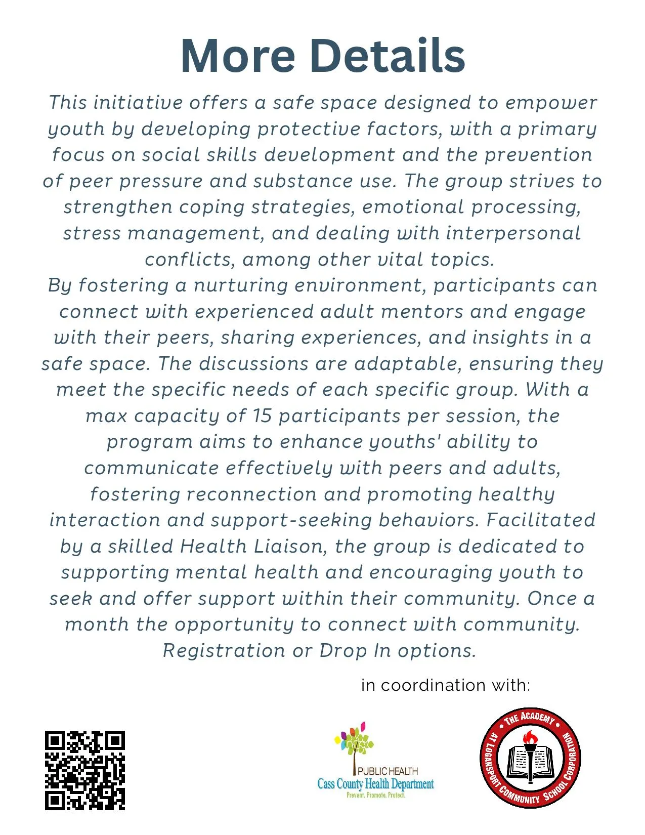 then 15 mins from the start of the group to participate. Will follow the LCSC school calendar, no meetings during vacations, unless otherwise arranged. (Mondays start in Jan 2026)
